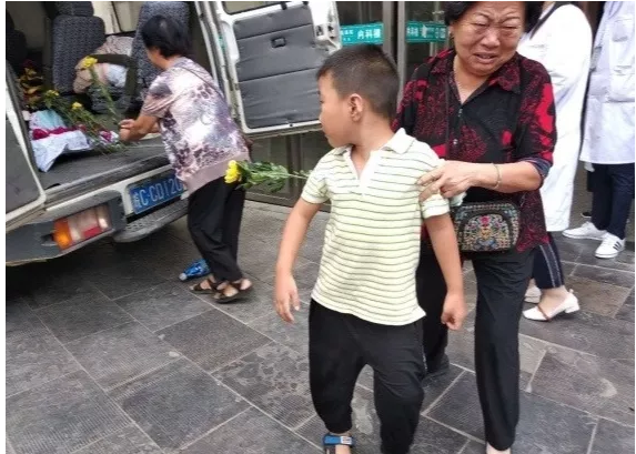 9月9日下午,家住太和患癌病逝的韩金华按生前的意愿做了遗体捐献,被抬上医院门外的灵车准备离开众亲友时 ,6岁的儿子小华(化名)得知永远也见不上妈妈时,这个懂事可怜的孩子“扑通”一下跪在了灵车前,不住地磕着头,任凭亲人怎么拉扯,一直都不肯起来……