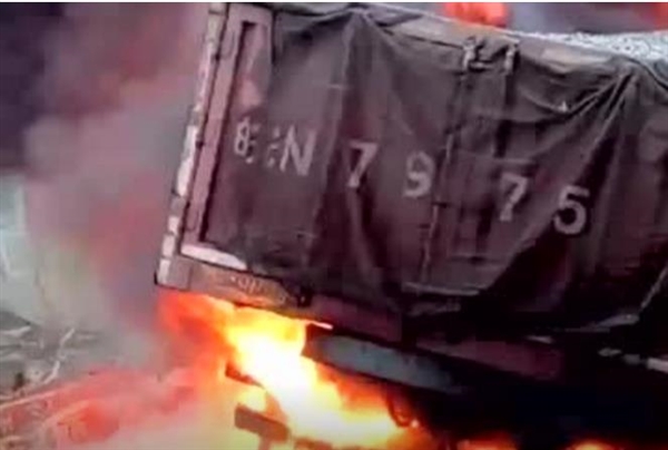 致两车起火燃烧。