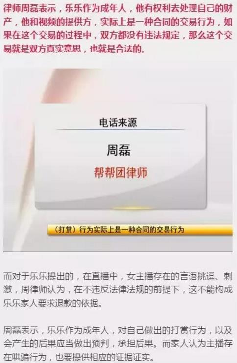 公司的客服人员表示,目前,公司已经接到乐乐家人的投诉,并已经对这一事件进行了核实,而对于乐乐所打赏的钱能否退还,公司相关负责人正在商议中。