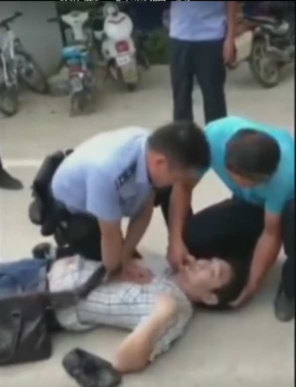 太和县三塔镇李陈村委会村民李某(男,42岁)到三塔派出所办理户口业务时,由于天气炎热,突发疾病休克倒在派出所院内,身体蜷缩在一起,脸色发白,全身发青,嘴角流血,渐渐停止了呼吸。正准备出警的阜阳太和公安