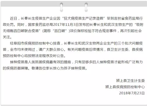 近日长春长生疫苗生产企业因“狂犬病疫苗生产记录造假”遭到吉林省药监局行政处罚,同时国家药监总局于2017年11月3日发布的“吸附无细胞百白破联合疫苗”(简称“百白破”)效价指标检验不符合规定事件(长春